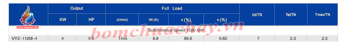 Bảng thông số kỹ thuật của động cơ Vicky VY-112M-2
