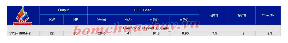 Bảng thông số kỹ thuật của động cơ Vicky VY-180M-2