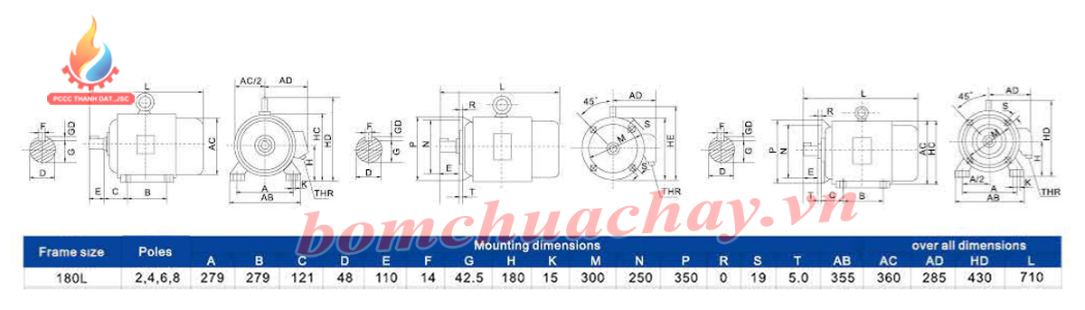 Bảng thông số kích thước của động cơ Vicky VY-180M-2