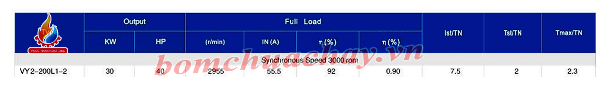 Bảng thông số kỹ thuật của động cơ Vicky VY-200L1-2