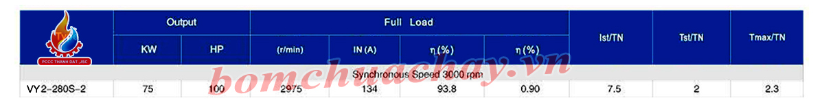 Bảng thông số kỹ thuật của động cơ Vicky VY-280S-2