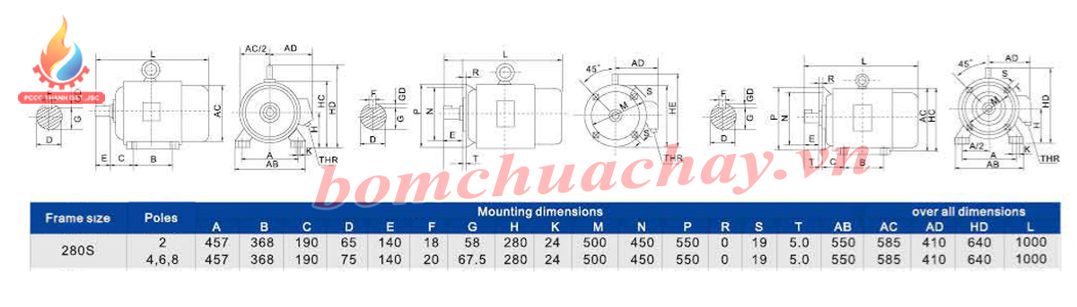 Bảng thông số kích thước của động cơ Vicky VY-280S-2