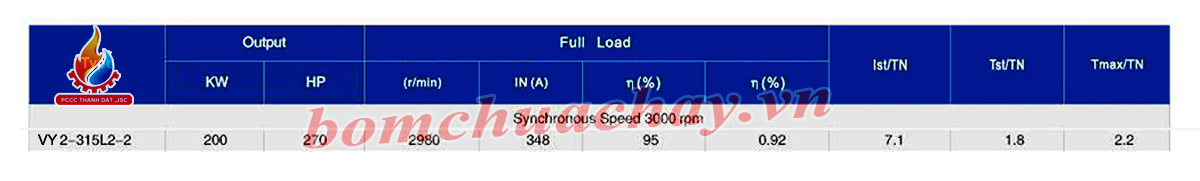 Bảng thông số kỹ thuật của động cơ Vicky VY-315L2-2