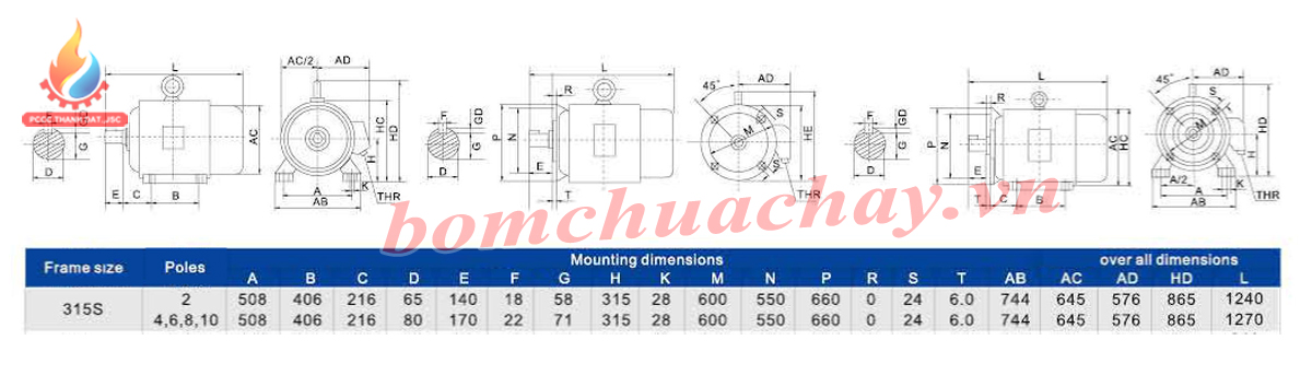 Bảng thông số kích thước của động cơ Vicky VY-315S-2
