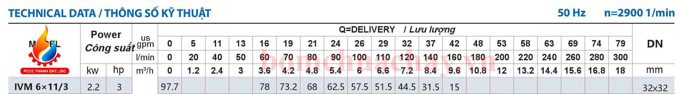 Bảng thông số kỹ thuật của máy bơm bù áp Inter IVM 6×11 3HP